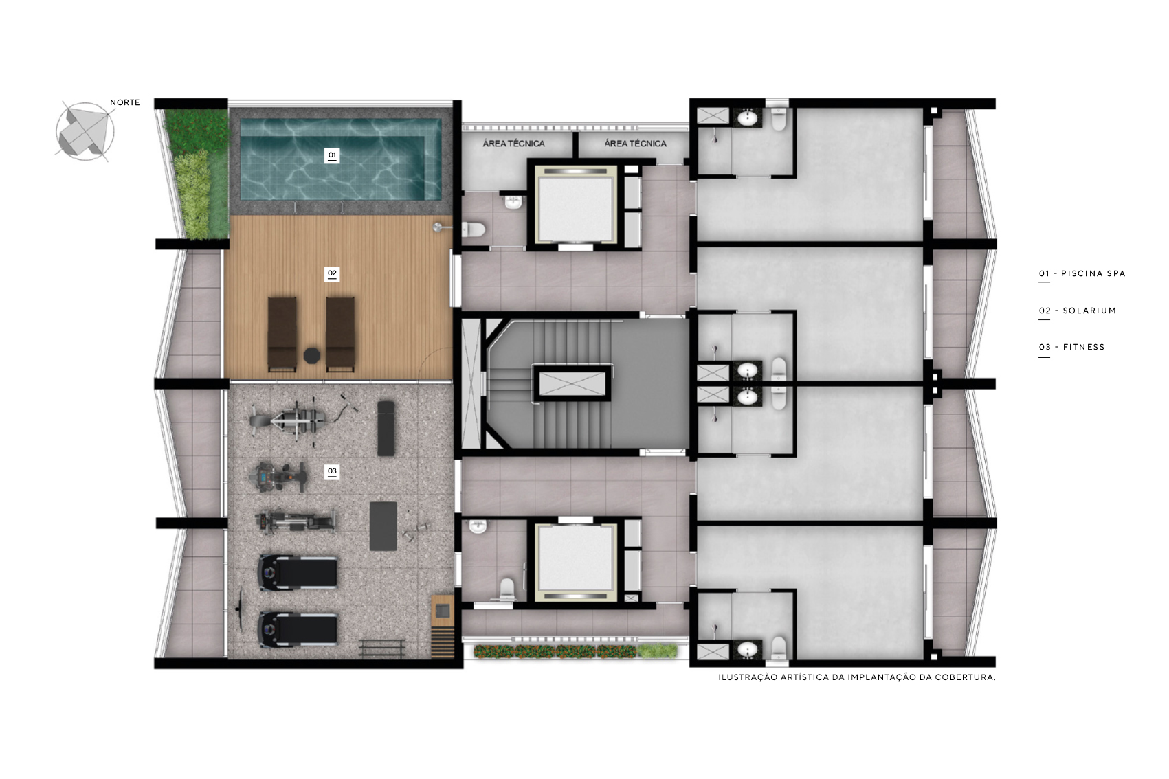 com piscina e fitness na cobertura, lavanderia coletiva, sala de delivery e coworking integrado com o espaço garden, que ampliam os melhores momentos do bem-estar.